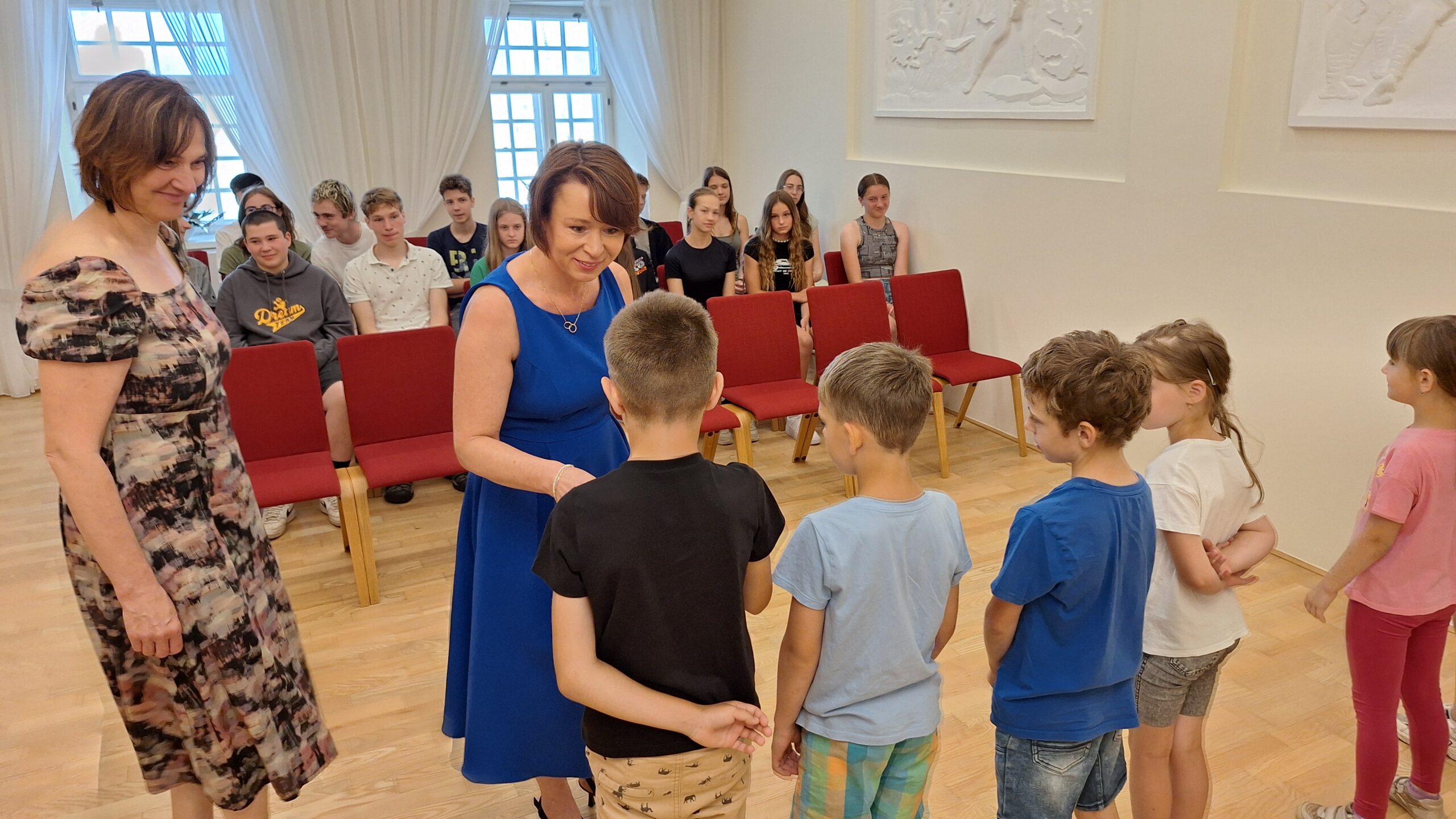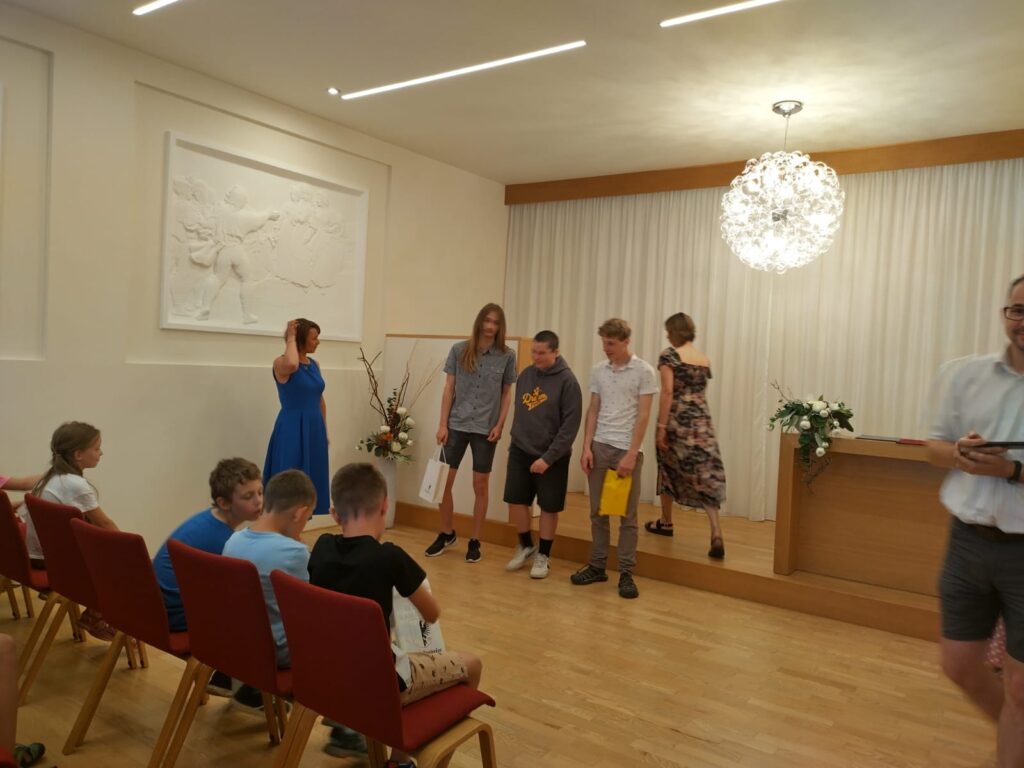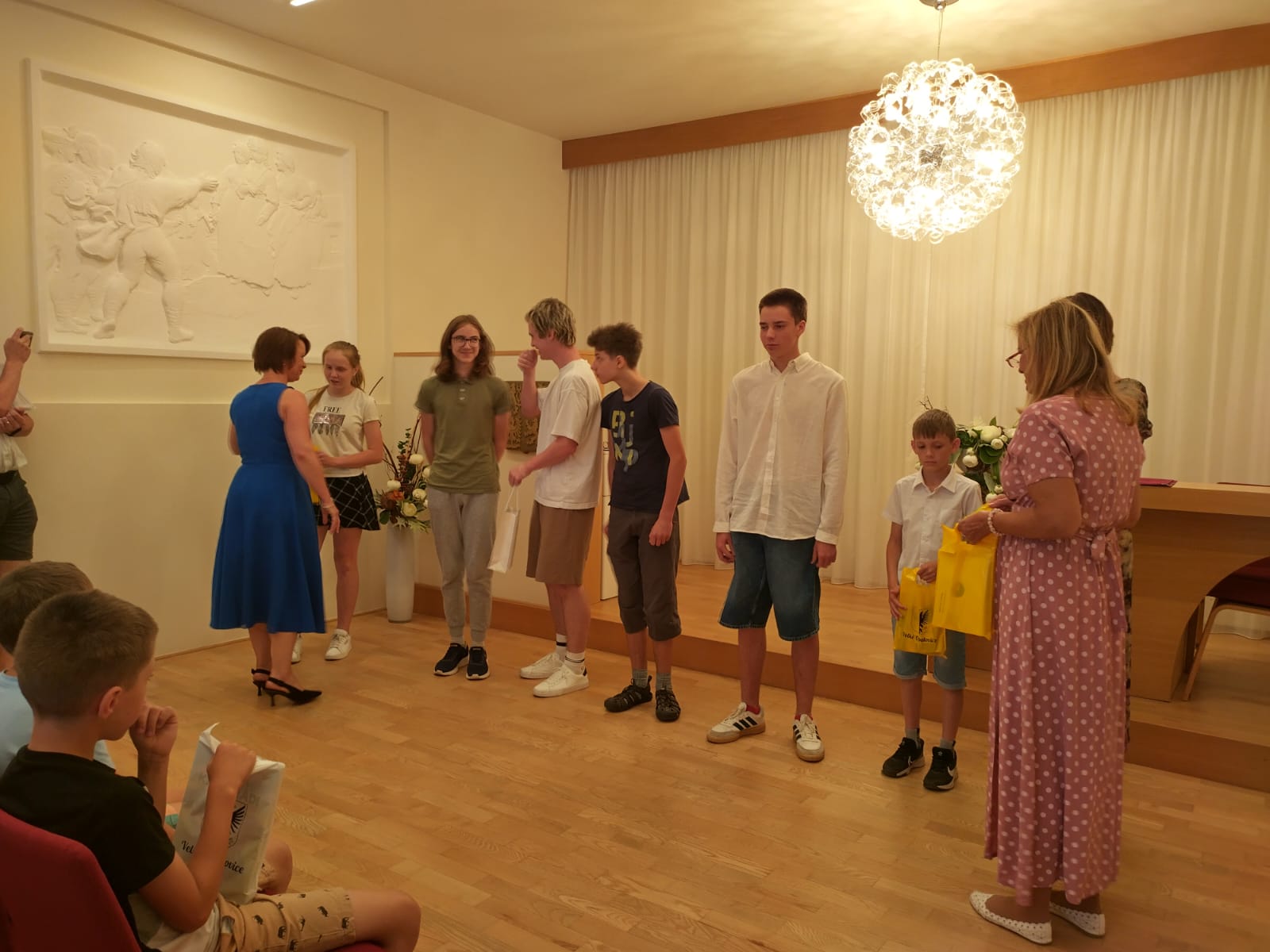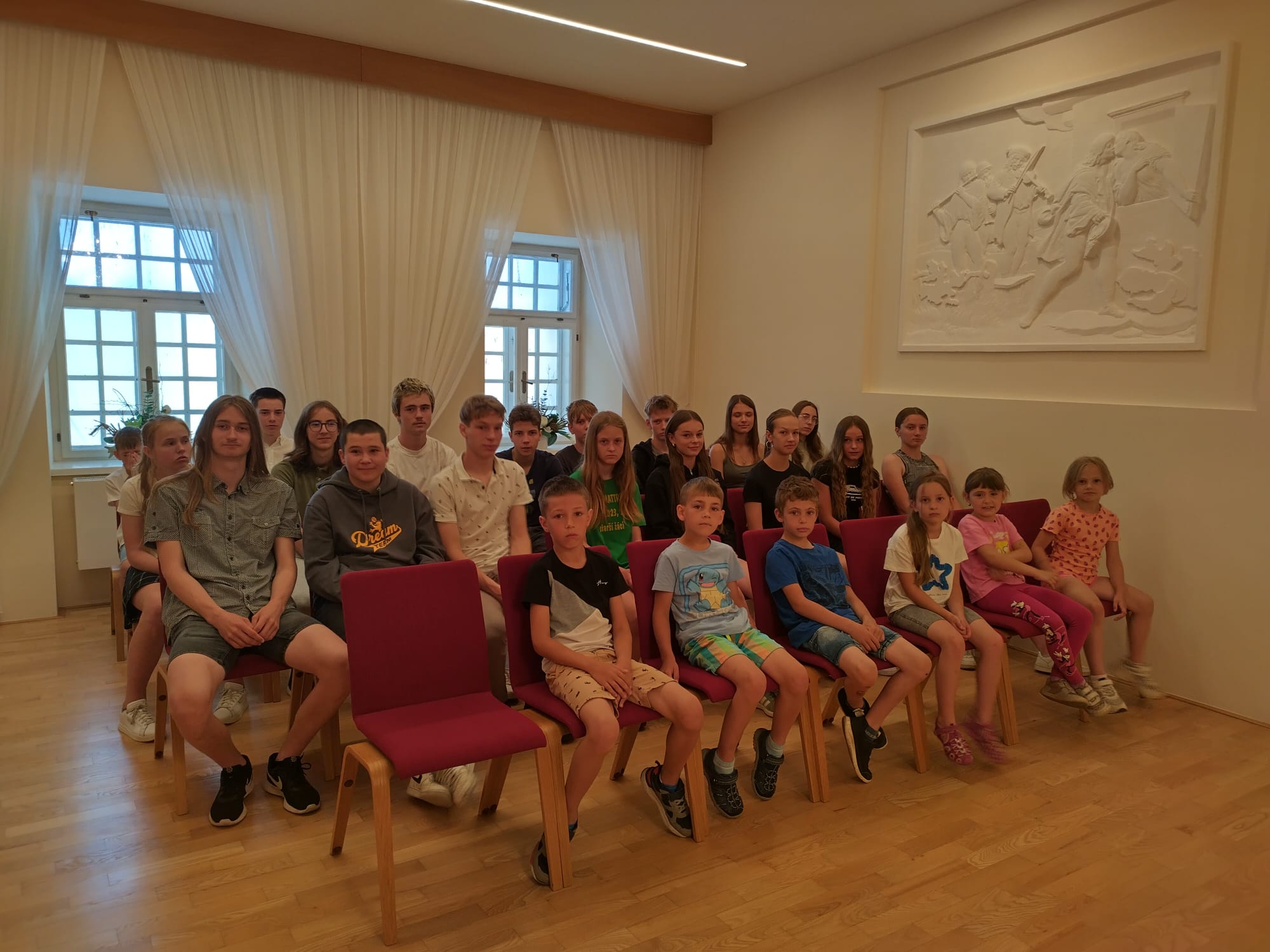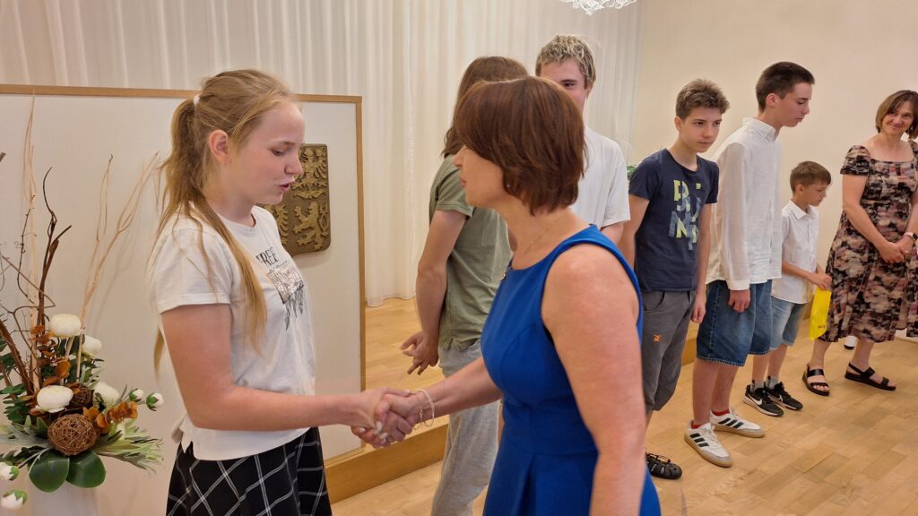 Je už milou tradicí, že úspěšní žáci, vítězové či úspěšní řešitelé z nejrůznějších soutěží a olympiád, jsou na konci školního roku přijati starostkou města. I letos se všichni společně sešli v obřadní síni a vyslechli si slova poděkování a odnesli drobné dárky.