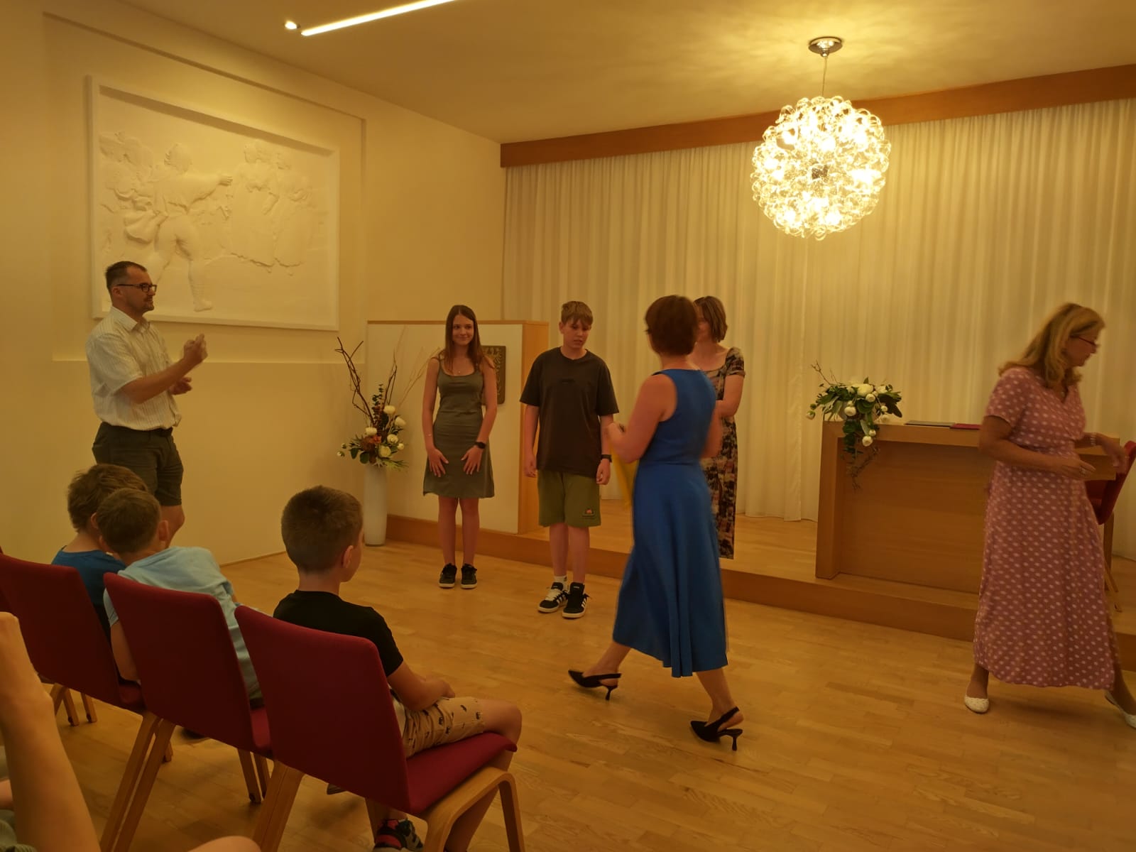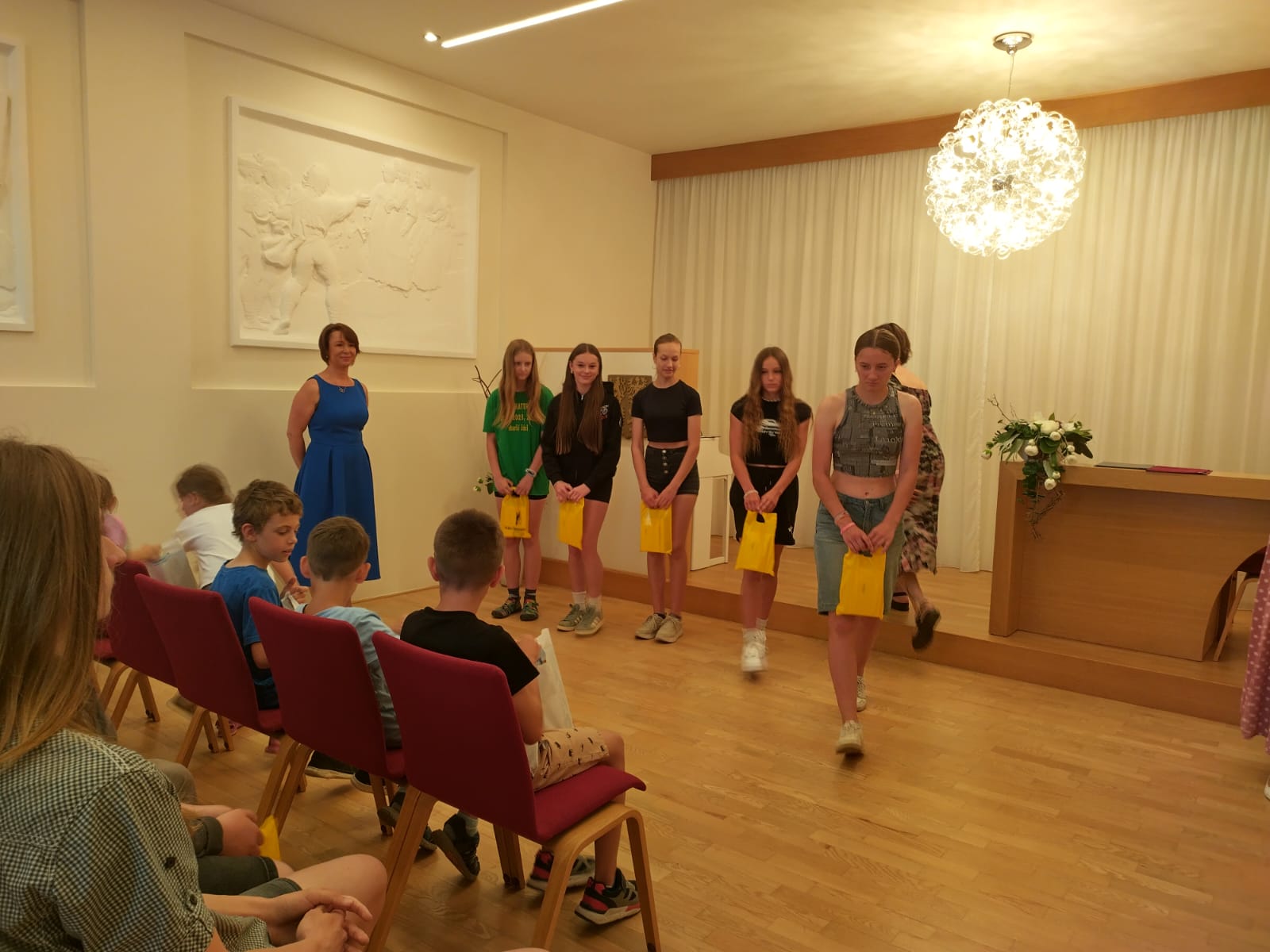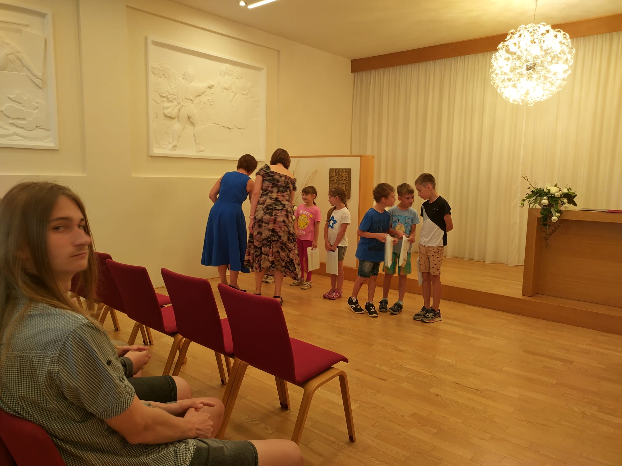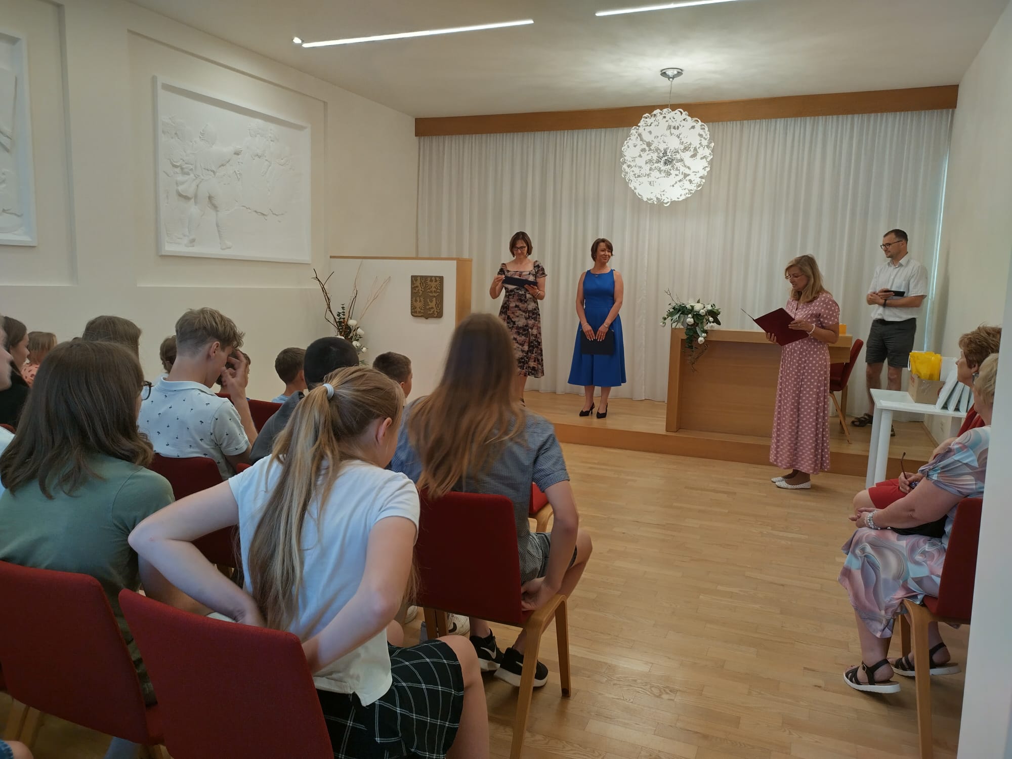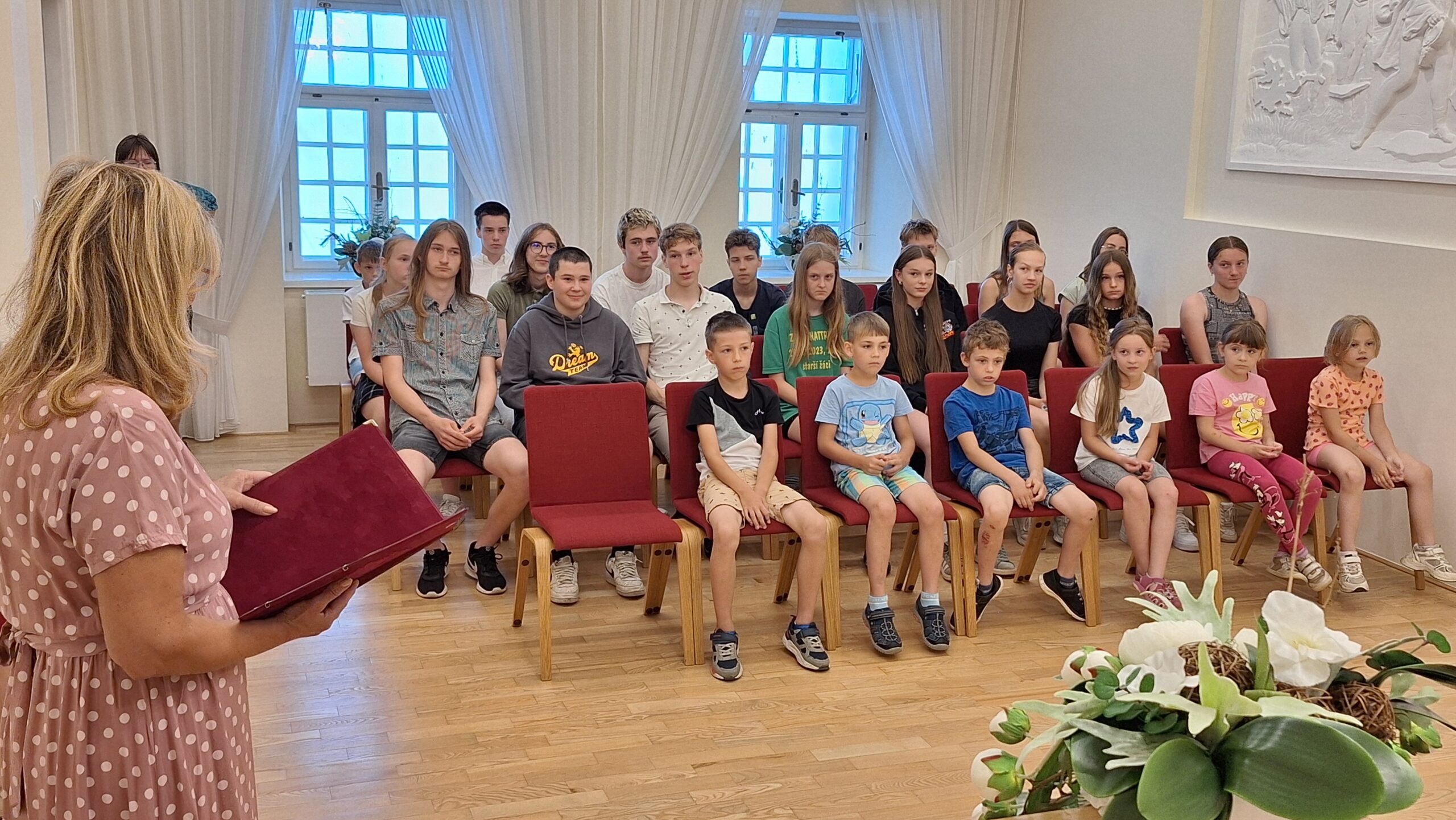 Je už milou tradicí, že úspěšní žáci, vítězové či úspěšní řešitelé z nejrůznějších soutěží a olympiád, jsou na konci školního roku přijati starostkou města. I letos se všichni společně sešli v obřadní síni a vyslechli si slova poděkování a odnesli drobné dárky.